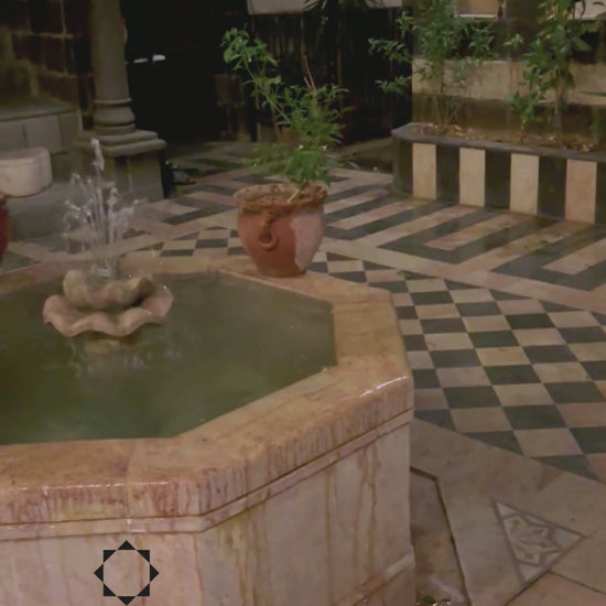 Each piece is handmade in Damascus, carrying the light and fragrance of jasmine through every detail.