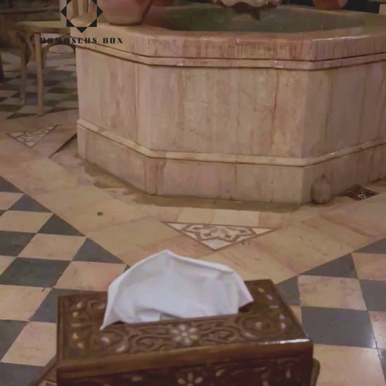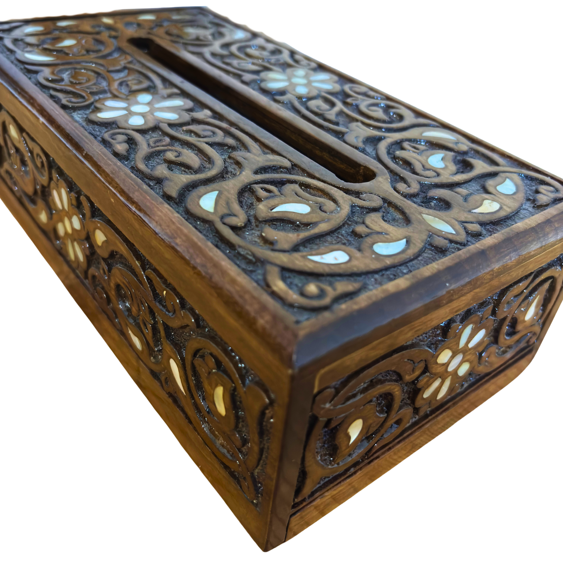 portafazzoletti intagliato a mano, madreperla, arte damascina, accessorio artigianale, decorazione orientale, Damascus Box